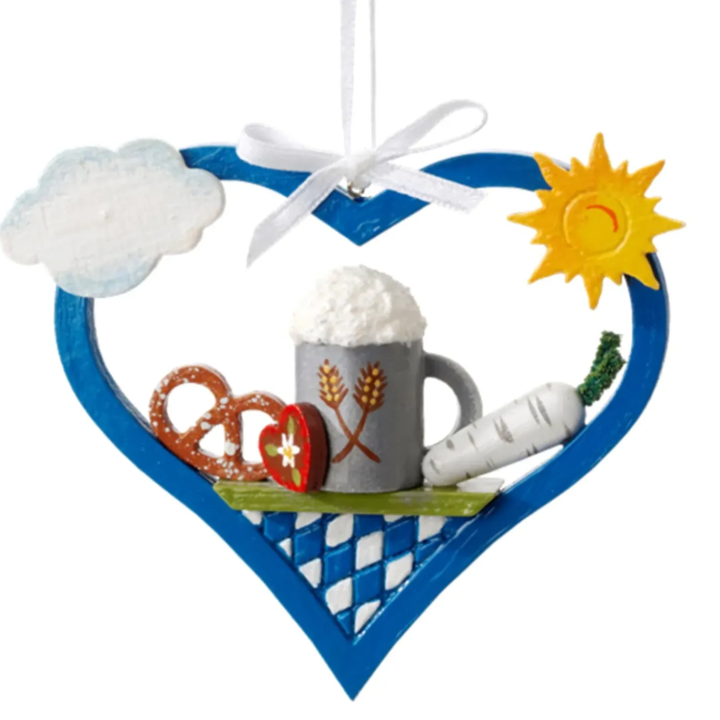 Der Himmel Leuchtet In Den Bayerischen Farben Weis Und Blau Und Die Sonne Lacht Am Himmel. Beruhmt Ist Bayern Auch Fur Sein Hervorragendes Bier Und Herzhaftes Essen. Eine Mas Bier, Eine Breze, Ein Lebkuchenherz Und Ein „Radi“ (Rettich) Wurden Hier Stellvertretend Dargestellt. Das Blaue Herz Ist Eine Schone Erinnerung An Eine Reise Nach Bayern Und Ein Nettes Mitbringsel Von Dieser Reise, Aber Naturlich Auch Ein Tolles Dekorationselement Fur Alle Bayern-Fans!