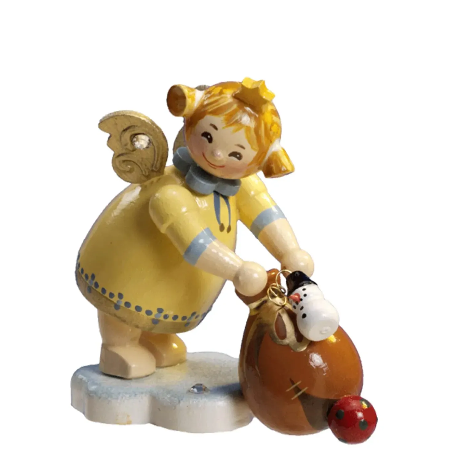 Das Suse Engelchen Im Gelben Kleid Verschnurt Den Fertig Gepackten Geschenkesack! Nanu!? Ein Roter Ball Und Ein Kleiner Schneemann Sind Wieder Aus Dem Sack Gepurzelt… Das Aufmerksame Engel-Madchen Hat Es Aber Bemerkt Und Packt Gleich Nochmal Von Neuem.