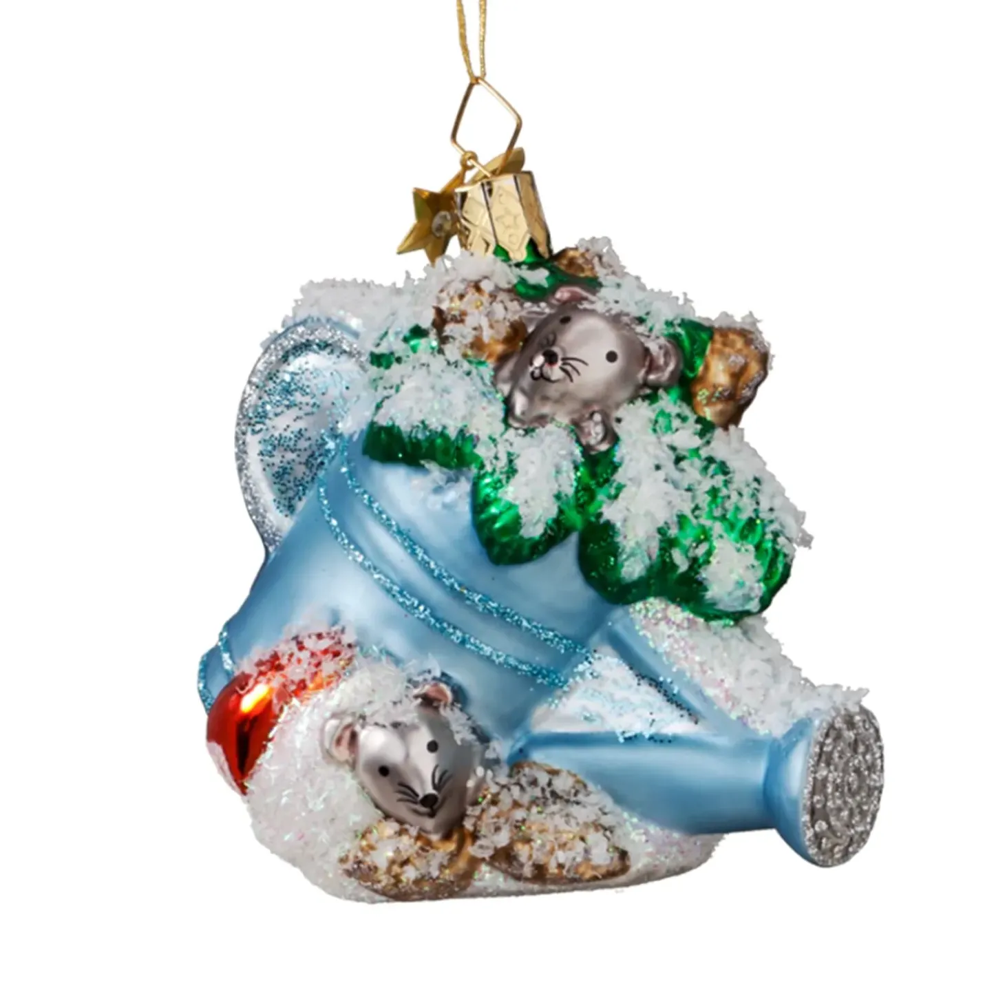 Wahrend Sie Die Vergangenen Winter Nur In Der Ecke Lag, Da Sie Nur Immer Sommer Gebraucht Wird, Hat Die Gieskanne Dieses Jahr Eine Ganz Neue Funktion. Zwei Kleine Mause Fuhlten Sich Von Der Blauen Gieskanne Angezogen Und Machten Sie Prompt Zu Ihrem Winterdomizil. Um Sich Vor Der Kalte Und Dem Schnee Zu Schutzen Machen Es Sich Die Mause Gemutlich Und Polstern Die Kanne Mit Tannenzweigen. Nun Kann Der Winter Kommen!