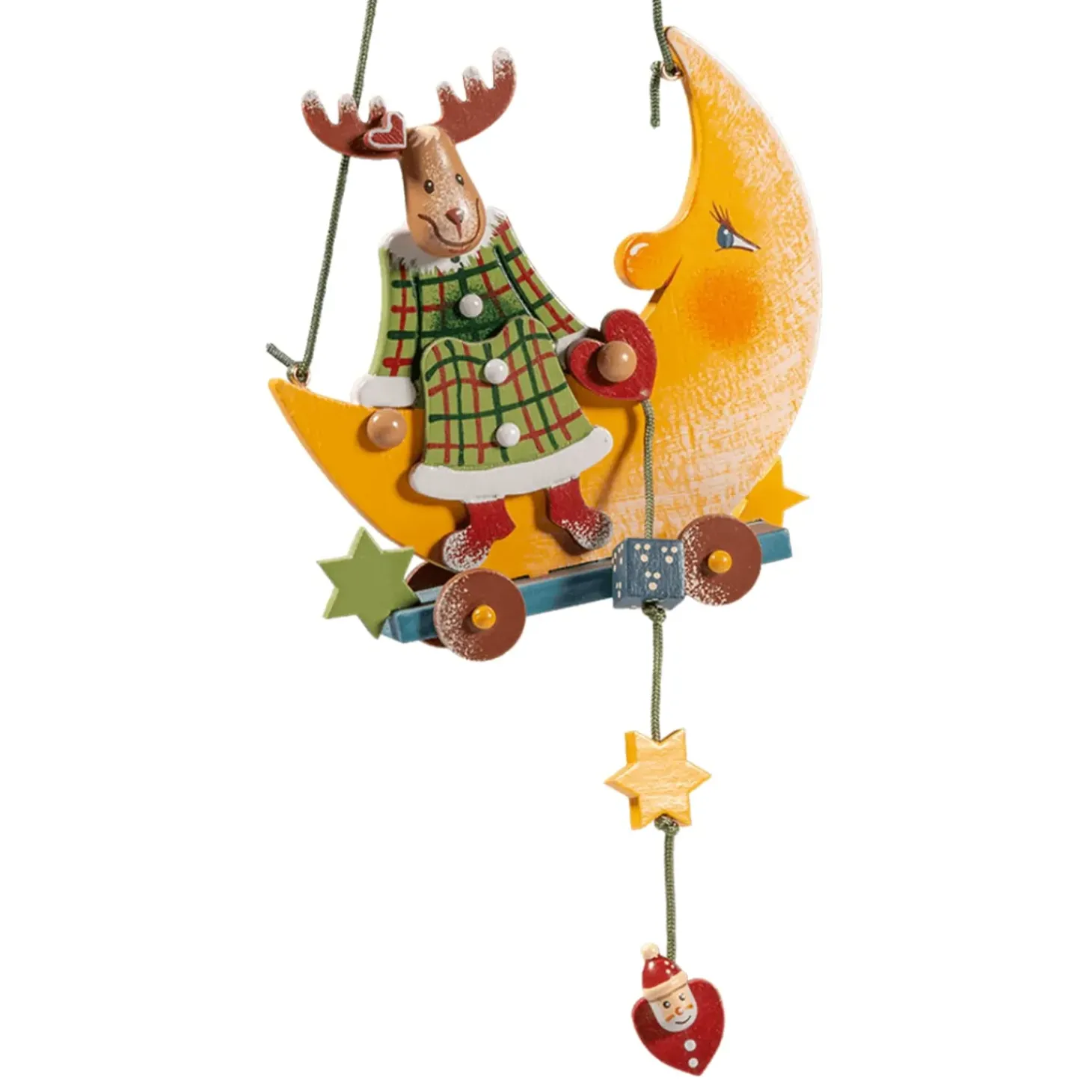 Der Niedliche Elch Beobachtet Neugierig Das Weihnachtliche Treiben Auf Der Erde. Um Eine Himmlische Rundfahrt Zu Machen Hat Der Kluge Elch Den Mond Mit Radern Versehen Und Schwebt Nun Durch Die Winterliche Nacht. Sterne Leuchten Ihm Den Weg. Ein Schones Ornament, Dass Zum Traumen Einladt.