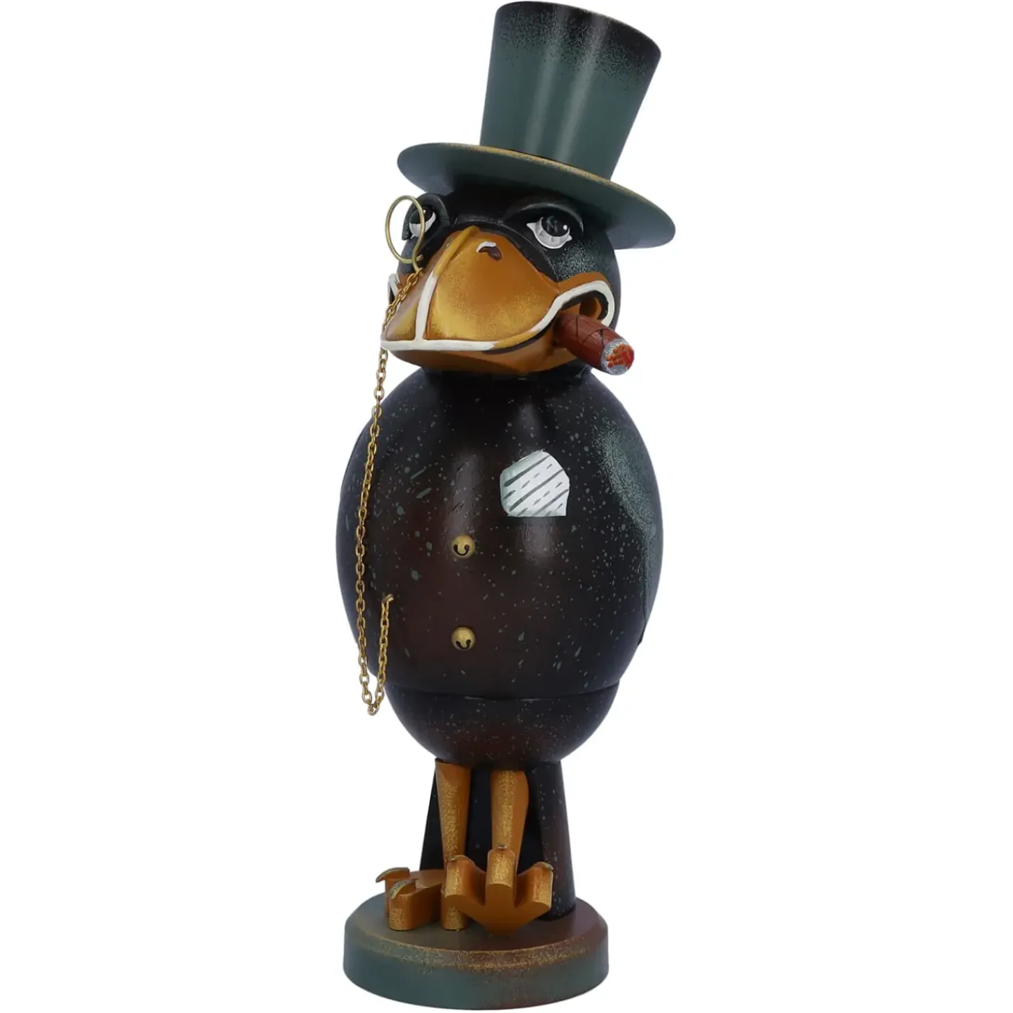 Der Verschmitzt Dreinschauende Rabe Freut Sich Auf Einen Platz Auf Ihrem Regal, Kamin Oder Fensterbrett Um Ein Auge Auf Das Geschehen Im Haus Zu Haben. Der Knoddl-Rabe Tragt Einen Zylinder Und Einen Schwarzen Frack, Sowie Ein Monokel. Seine Qualmende Zigarre Verbreitet Einen Angenehmen Raucherduft In Ihrem Zuhause.