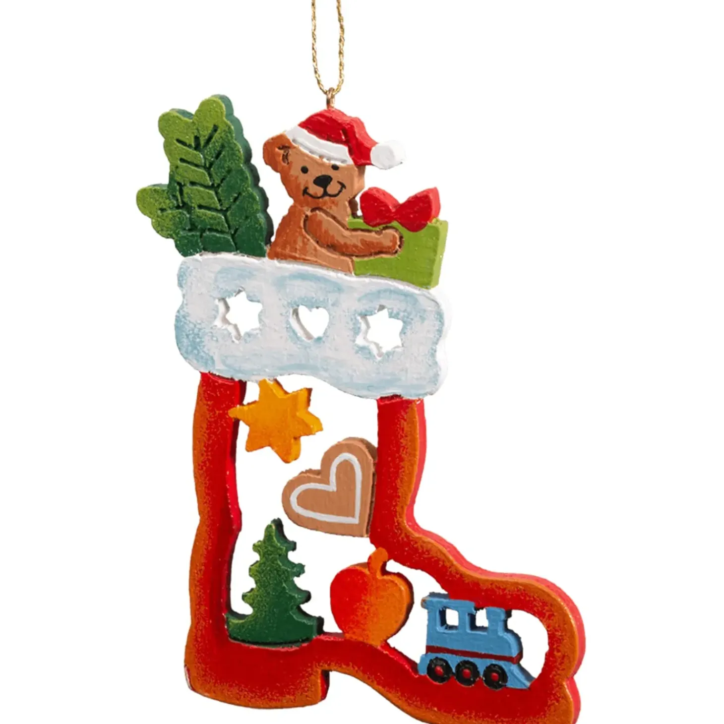 Farbenfroher Nikolausstiefel Aus Holz Zum Aufhangen.
