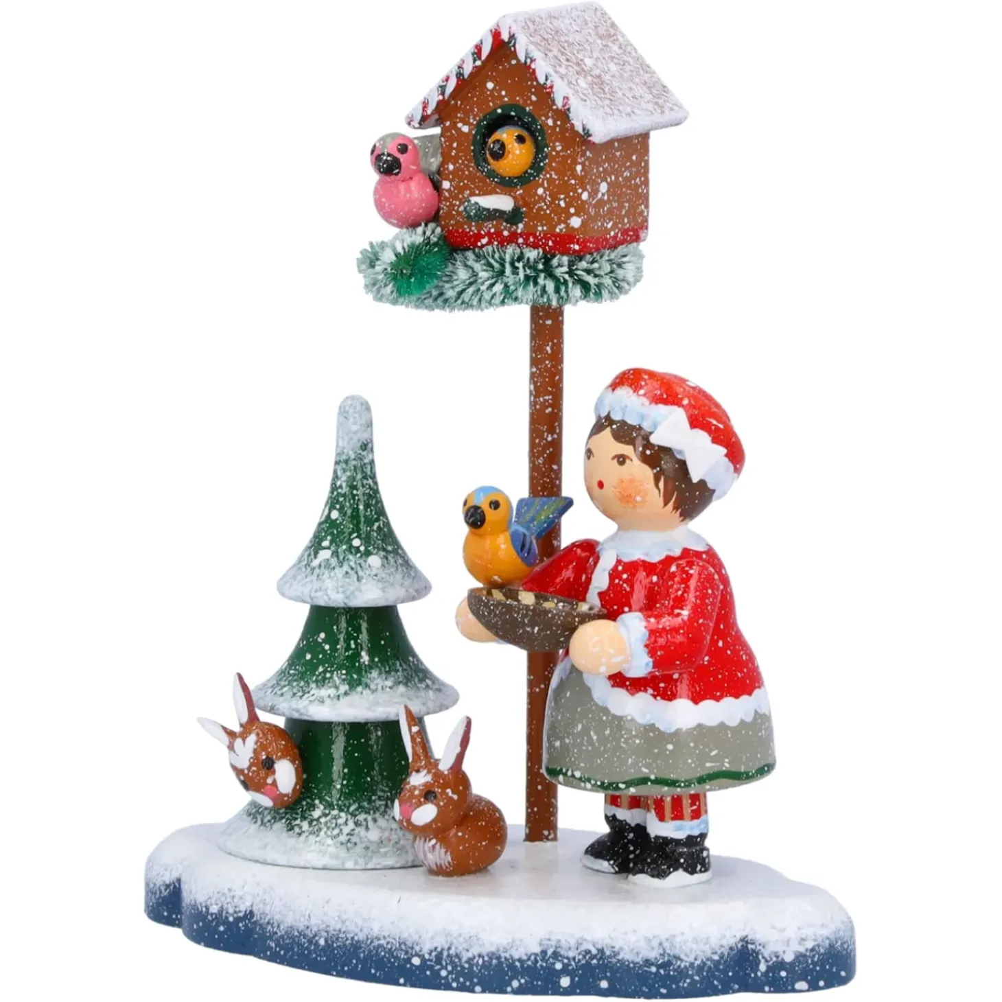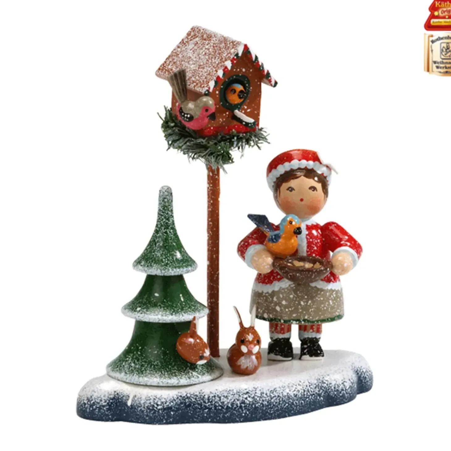 Abseits Des Weihnachtlichen Treibens Im Dorf Freuen Sich Die Vogel Uber Den Besuch Des Kleinen Madchens. Aufgeregt Und Neugierig Flattern Die Vogel Aus Ihrem Vogelhaus. Eine Sehr Hungrige Meise Labt Sich Schon An Den Kornern In Der Futterschale Des Madchens. Noch Etwas Schuchtern Und Versteckt Im Baumchen Beaugen Zwei Braune Haschen Das Geschehen. Hat Das Madchen Noch Eine Karotte Fur Sie Dabei? Eine Bezaubernde Szenerie In Ihrer Winterwelt!
