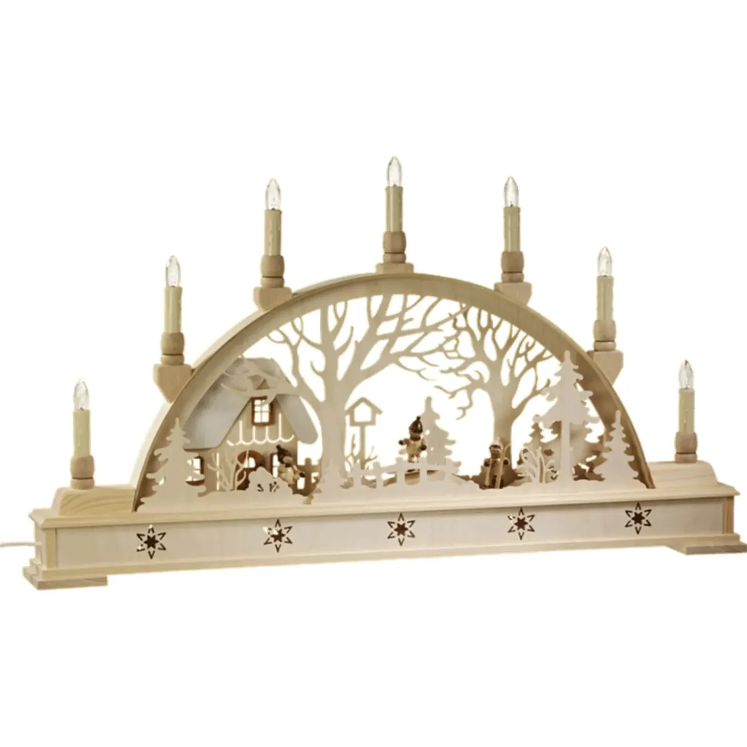 Er Steht Fur Die Hohe Handwerkskunst, Die Die Holzarbeiten Aus Dem Erzgebirge Pragt. Einst Waren Sie Ein Zuverdienst Fur Die Bergleute Im Winter. Heute Sind Schwibbögen Seit Uber 80 Jahren Eine Beliebte Dekoration Fur Die Weihnachtszeit.In Aufwendiger Und Liebevoller Handarbeit, Entstehen Wunderschone Landschaften, Die Durch Die Stimmungsvolle Beleuchtung In Szene Gesetzt Werden.Besonders Wirkungsvoll Erstrahlt Das Licht Des Schwibbögens Auf Dem Fensterbrett. Dort Sorgt Es In Der Kalten Jahreszeit Fur Eine Einladende Atmosphare. Aber Auch Auf Einem Tisch Oder Einem Regal Setzt Ein Schwibbögen Stimmungsvolle Akzente.