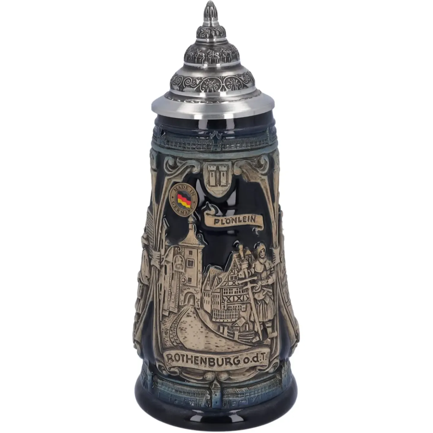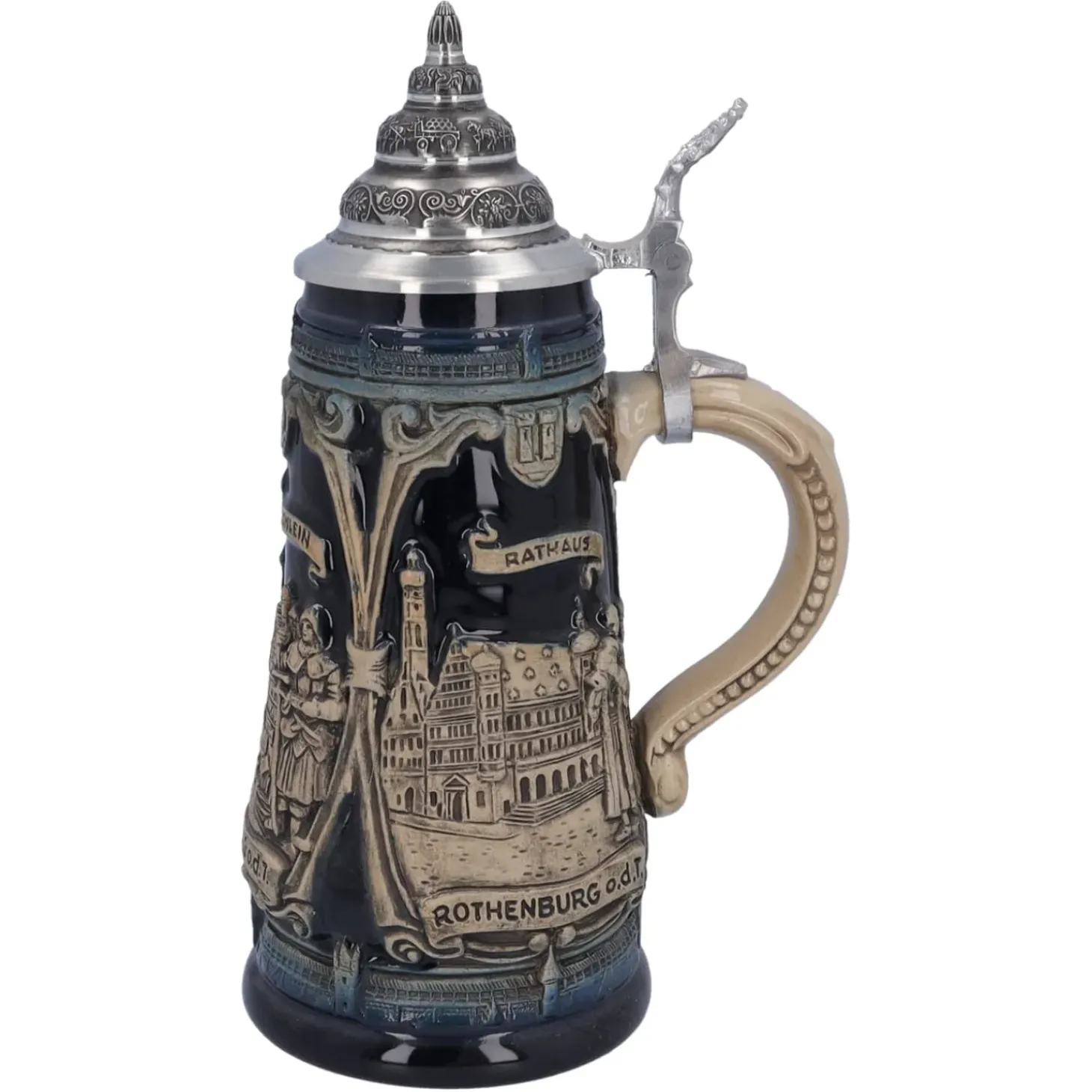Bierkrug Mit Zinndeckel "Rothenburg Mit Ritter", 0,5L