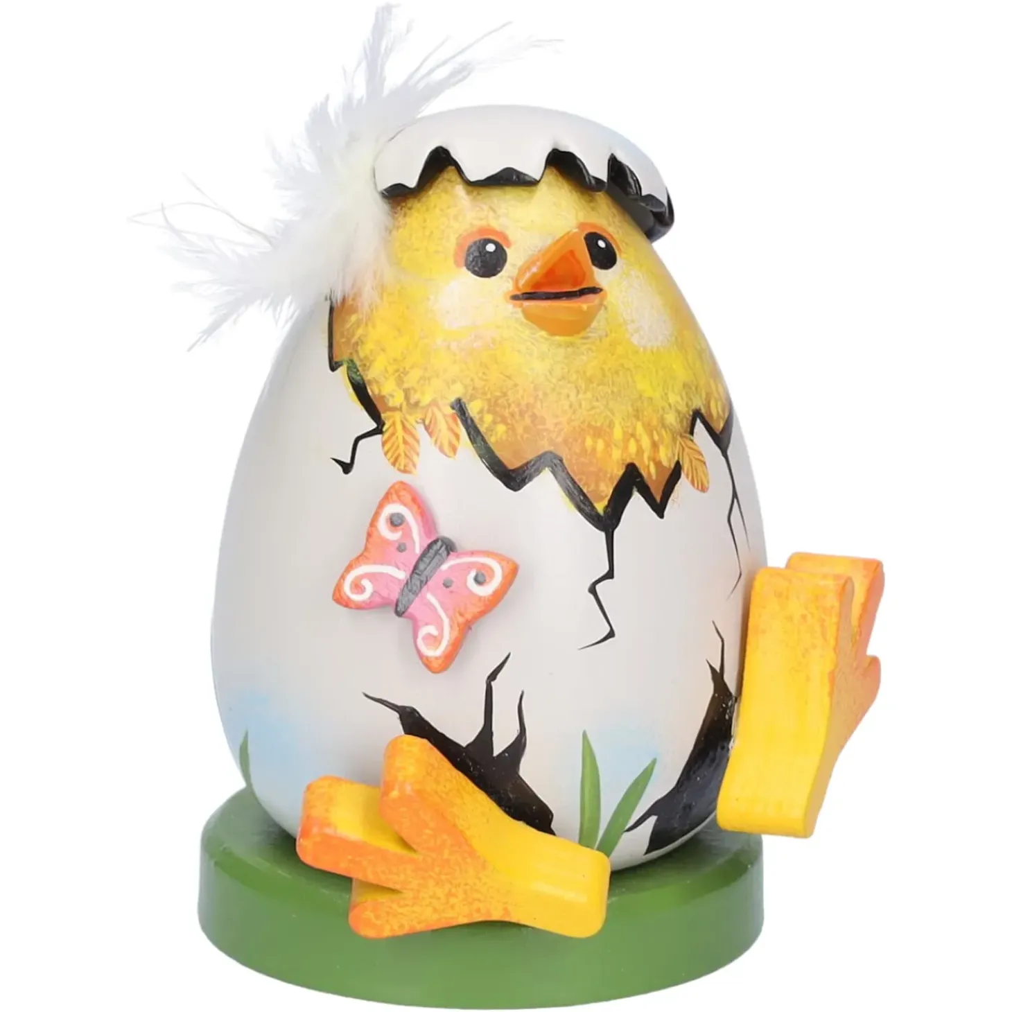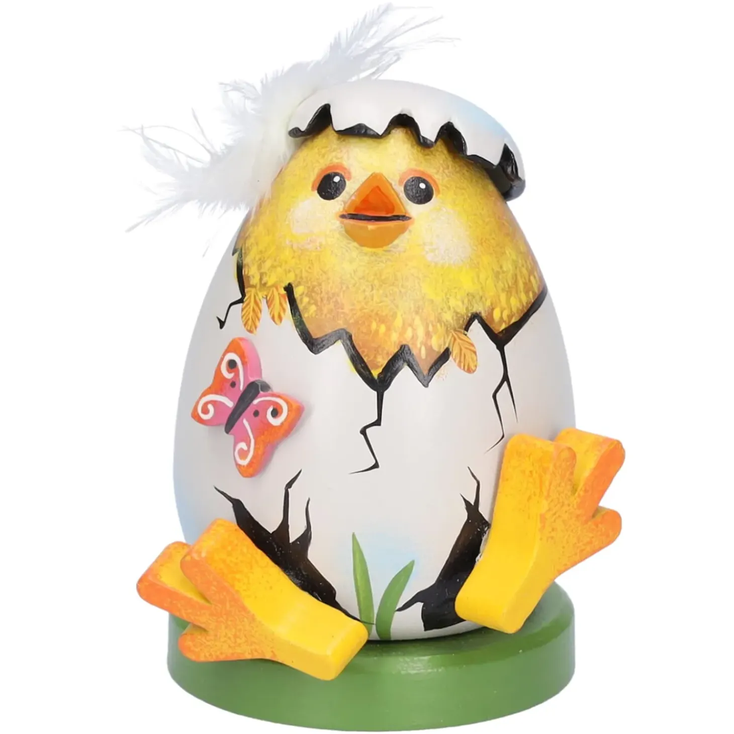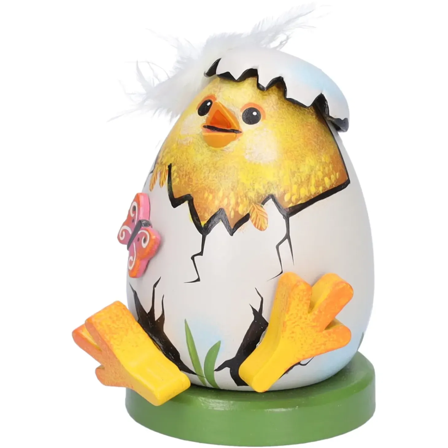 Nanu, Wer Ist Denn Da Geschlupft? Das Kleine Gelbe Kuken Steckt Noch Halb In Seiner Weisen Eierschale Aber Ist Schon Bereit Die Welt Zu Entdecken. Eine Feder Steht Von Den Anstrengungen Zerzaust Von Seinem Kopf Ab. Auf Der Eierschale Hat Ein Kleiner Bunter Schmetterling Platz Genommen. So Liebevoll Gestaltet Ist Das Kuken Ein Hingucker Im Osternest, Am Osterkranz Oder Auf Dem Gedeckten Ostertisch Und Eine Schone Geschenkidee.