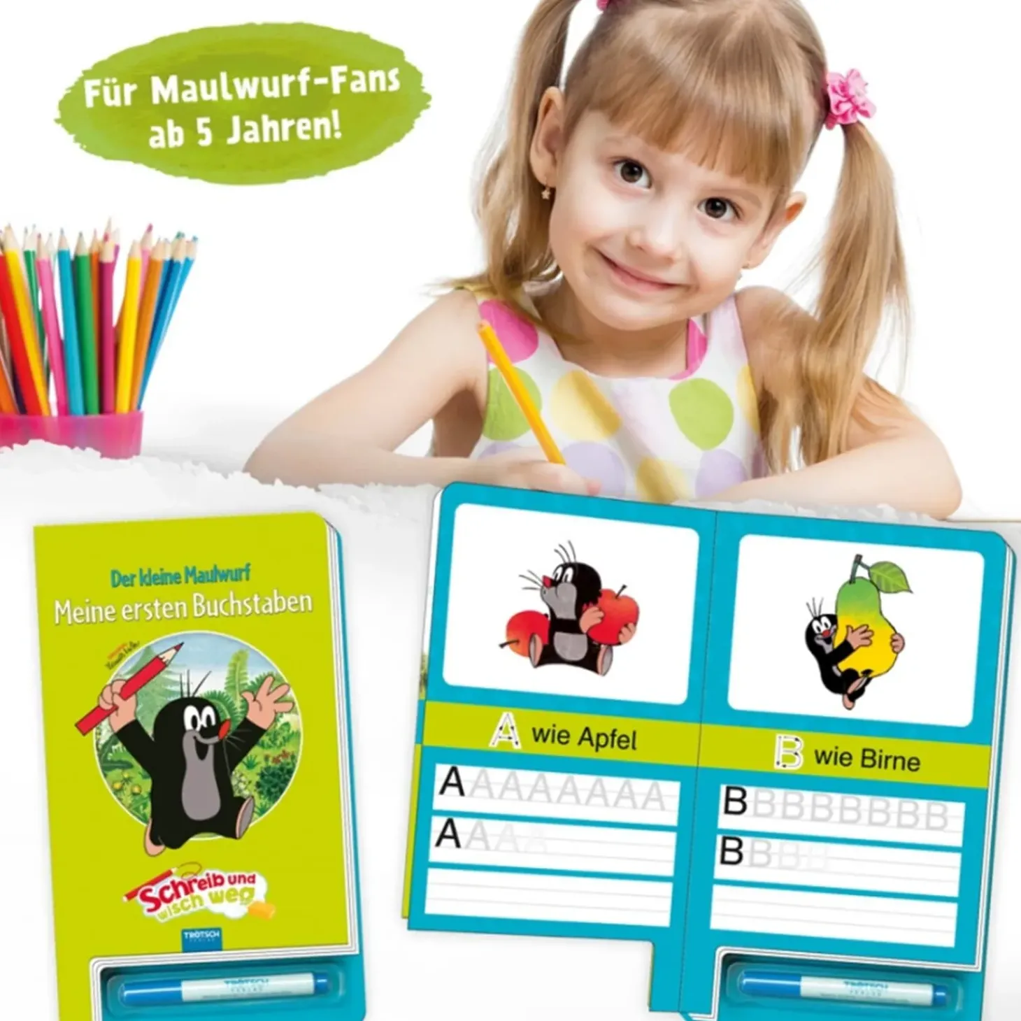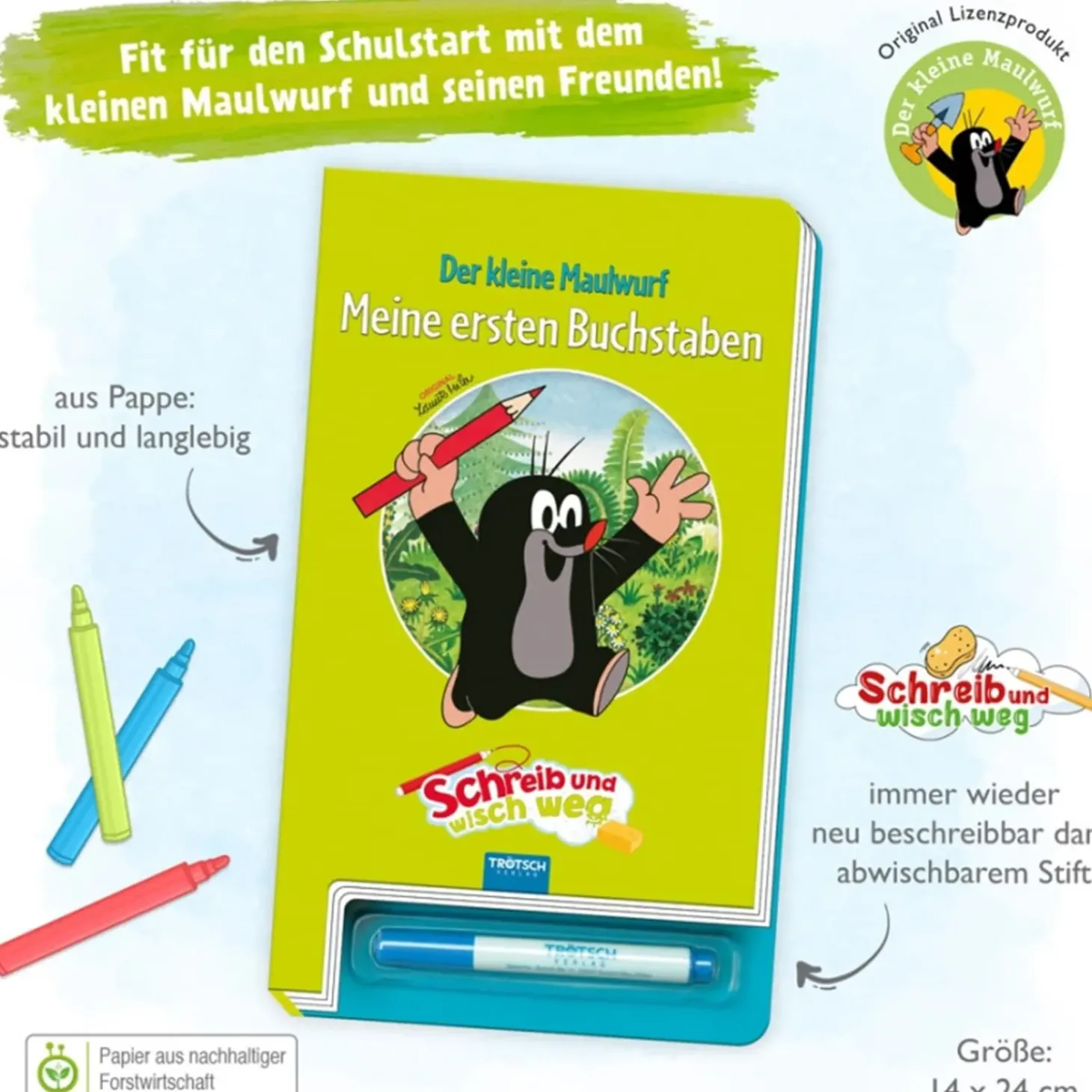 Dieses „Schreib Und Wisch Weg“-Buch Mit Dem Kleinen Maulwurf Hilft Beim Erlernen Und Uben Der Buchstaben.