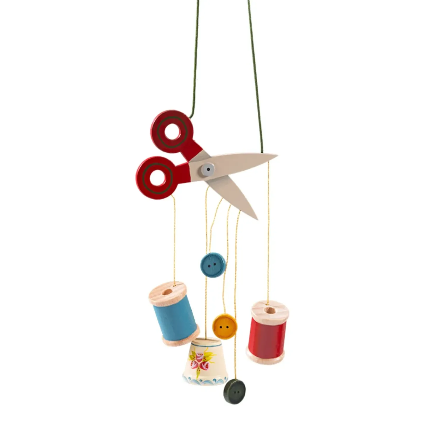 An Der Grosen Stoffschere Hangen Griffbereit Garnspulen, Knopfe Und Ein Bunter Fingerhut. Was Wird Ihr Nachstes Nahprojekt? Die Perfekte Dekoration Fur Alle Nahbegeisterten Und Diy-Fans Und Ein Toller Blickfang Fur Das Nahzimmer.