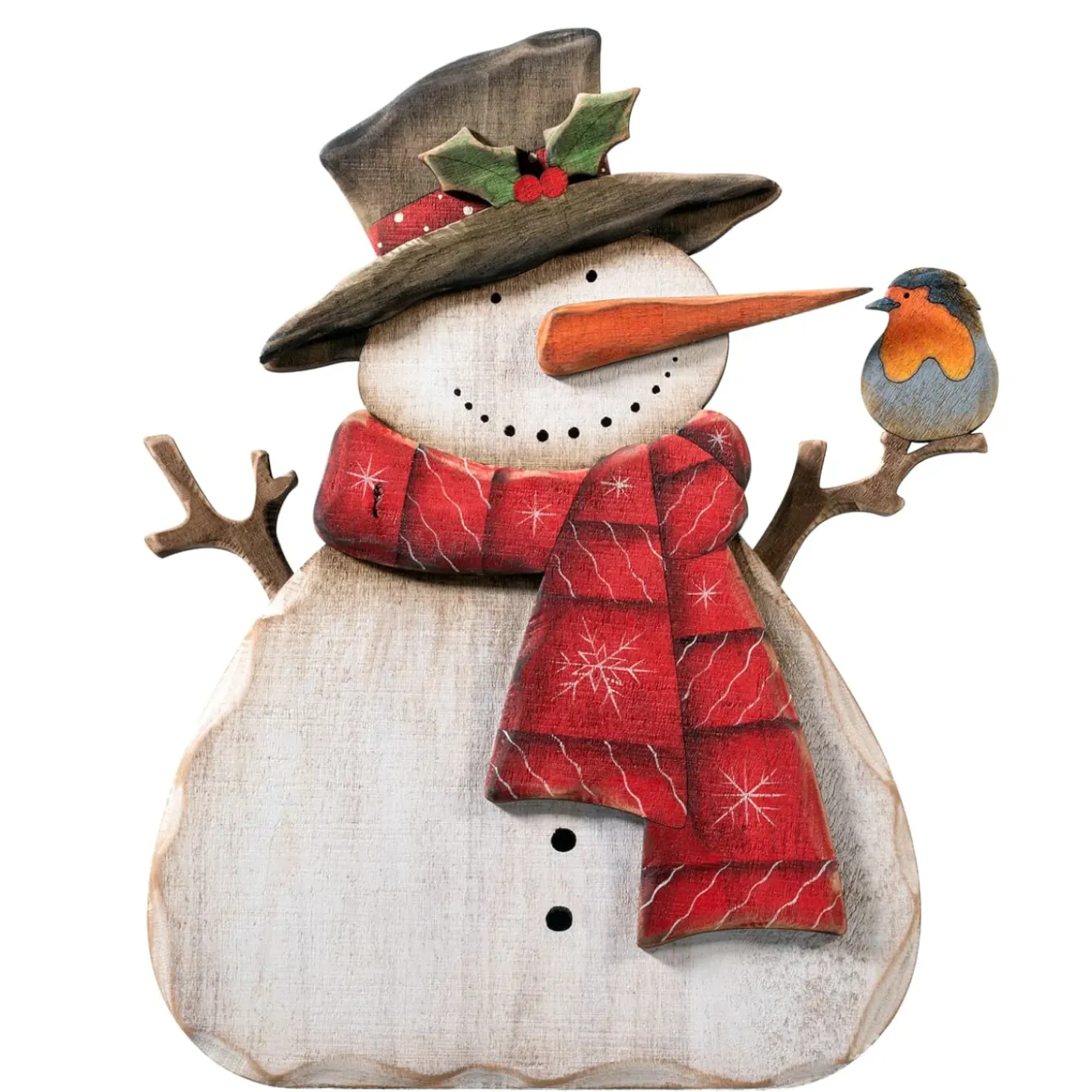 Drolliger Schneemann Mit Hut, Schal Und Rotkehlchen Auf Dem Arm Im Landhausstil