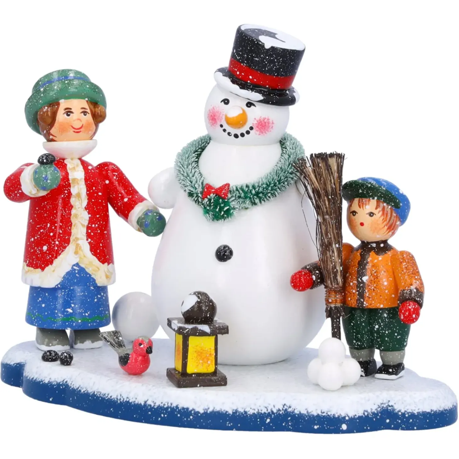 Gemeinsam Einen Schneemann Bauen Ist Ein Echtes Vergnugen In Der Winterzeit! Der Grose Wintergeselle Hier Bekam Einen Festlichen Kranz Aus Tannengrun Um Den Hals Und Einen Zylinderhut Auf Den Kopf. Die Karotte Als Nase Darf Naturlich Auch Nicht Fehlen! Langsam Wird Es Dunkel – Bei Den Letzten Handgriffen Leuchtet Dem Jungen Und Seiner Schwester Die Brennende Laterne. Daneben Hat Sich Ein Kleiner Vogel Dazugesellt. Der Junge Ubereicht Noch Den Typischen Besen Und Das Madchen Mochte Den Weisen Mantel Des Schneemanns Noch Mit Knopfen Aus Kohlestucken Verzieren. Eine Bezaubernde Szenerie In Ihrer Winterwelt!